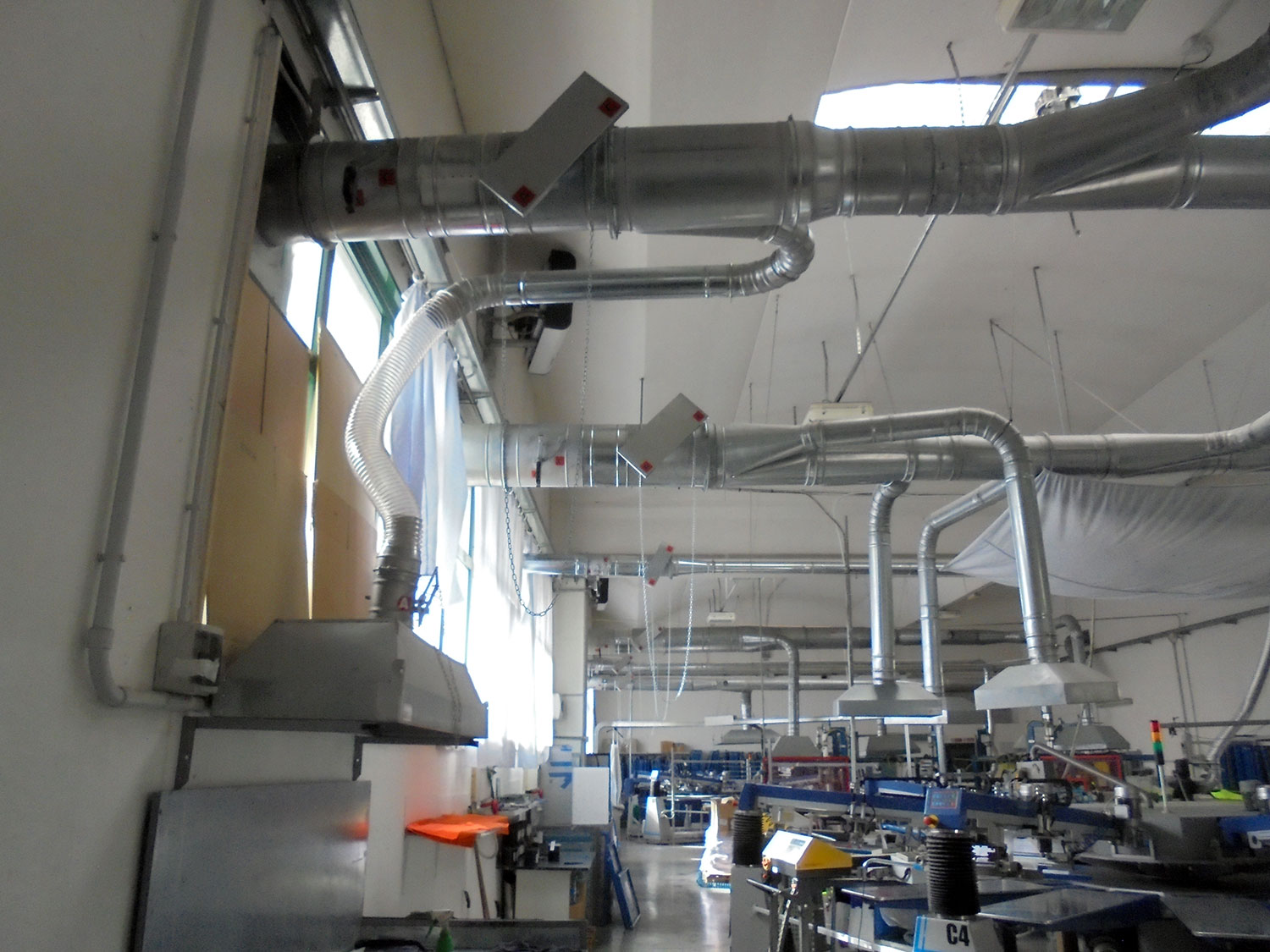 Gli impianti di aspirazione nel comparto calzaturiero vengono installati allo scopo di eliminare o ridurre il rischio derivante dalla evaporazione dei solventi organici contenuti nei mastici usati per l’ incollaggio e utilizzati per operazioni di pulizia sul prodotto.